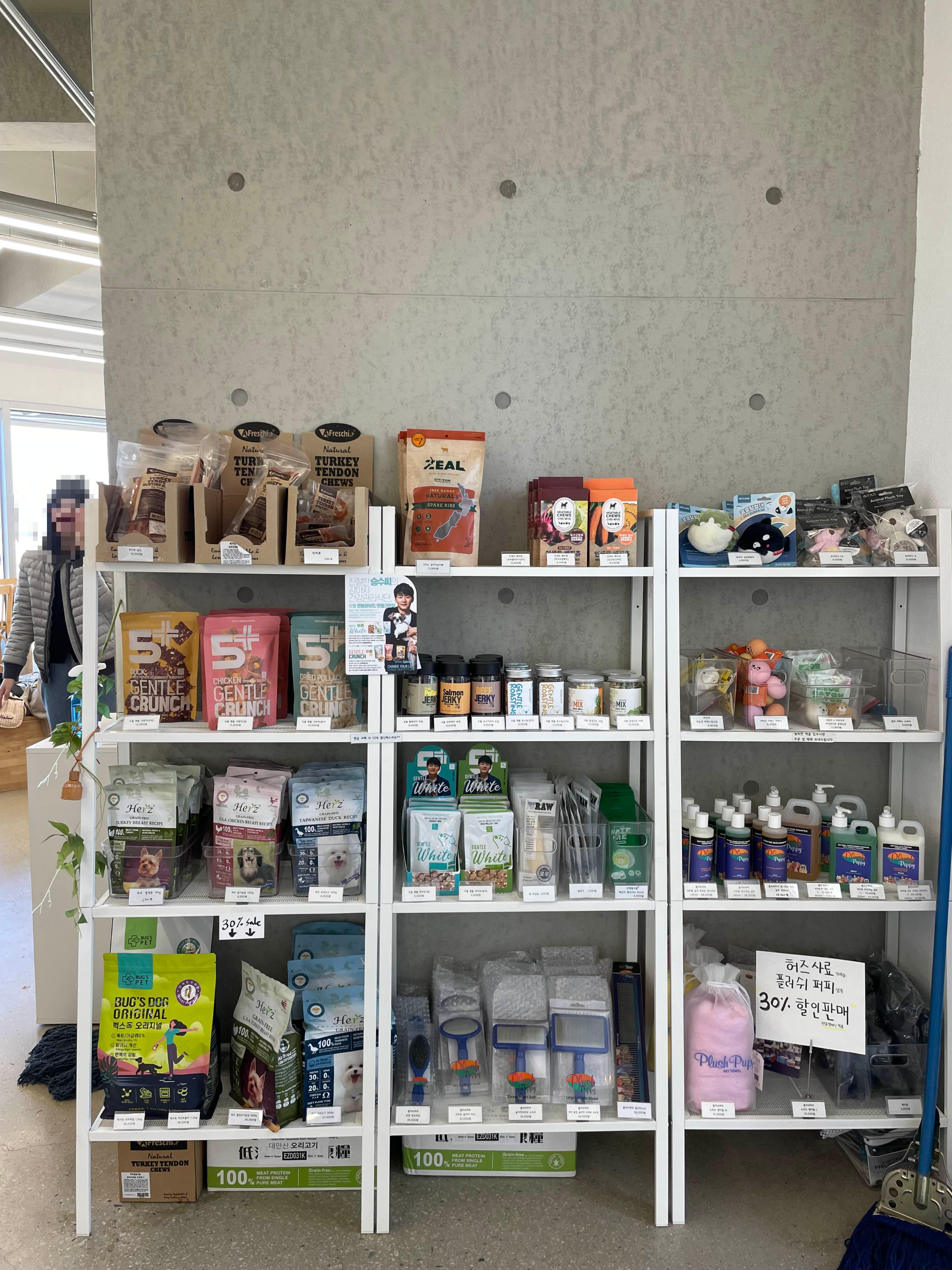 - 물론 강아지 간식과 용품들도 다양하게 구비되어 있다. 깜박하고 장난감을 못 챙겼다면 여기서 사면 된다!