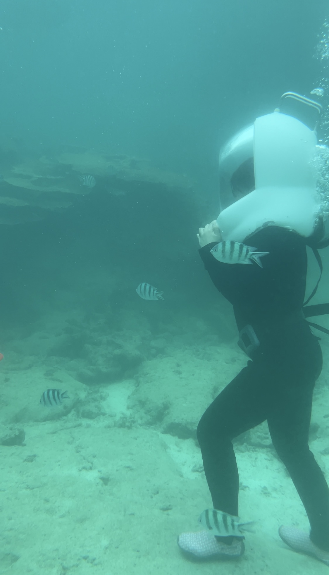 스펀지밥에 다람이(또는 우주인)가 된 것 같은 기분으로 바닷속 모래 위를 걷는다.