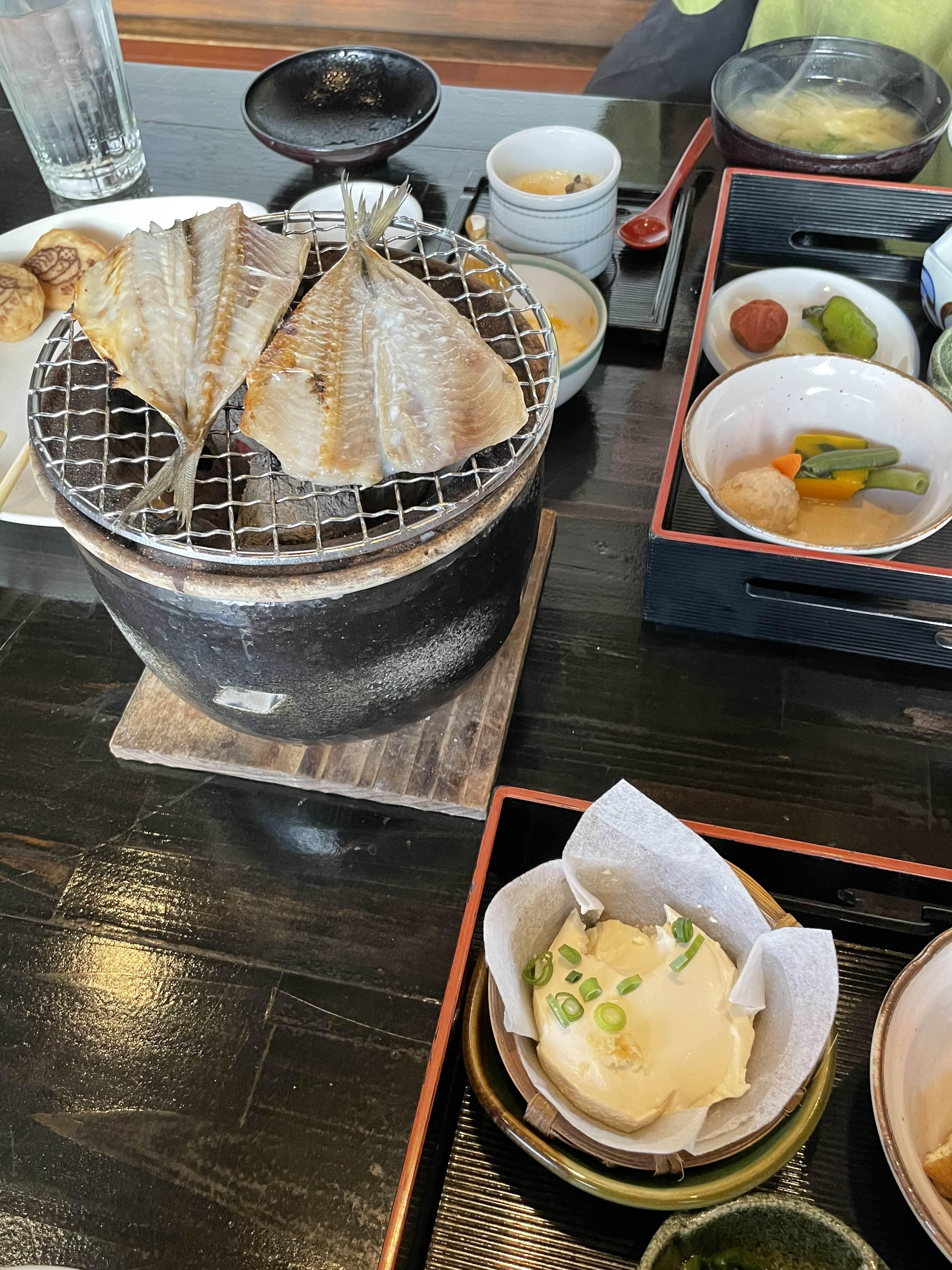 아침목욕 후 한숨 더 자고 일어나 개운해진 몸으로 조식을 먹었다. 작은 화로에 타닥타닥 구워지는 생선과 함께 든든한 식사를 마쳤다. 미소된장국 또 먹고 싶다!